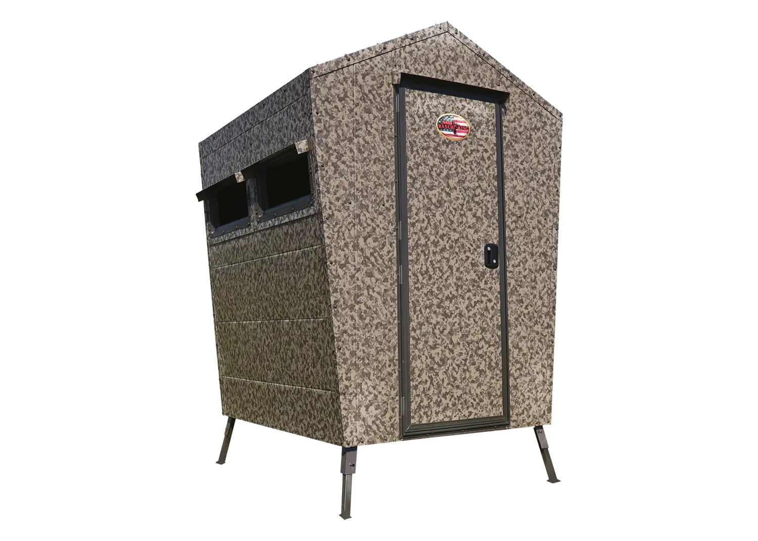 There's nothing quite like looking through the scope of your rifle in the safety and comfort of an MB Ranch King Blind. Built for hunting, the LITTLE BUCK is an all-metal, steel tubing structure, carpeted from floor to ceiling to cushion weather and sound. Standing at 4'x5' with a 6-foot ceiling, it's our most portable option, with exterior window and door shades.