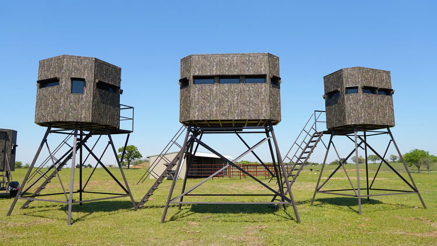 Our top-selling blinds are the Economy Blinds, and it's not surprising why. Boasting features such as composite shelves, exterior window and door shades, and floor-to-ceiling carpeting, this steel tubing structure meets and surpasses all the criteria for a high-quality hunting blind. Available in three convenient sizes as a ground blind or combinable with any of the three tower heights, it allows you to tailor your hunting experience to perfection.